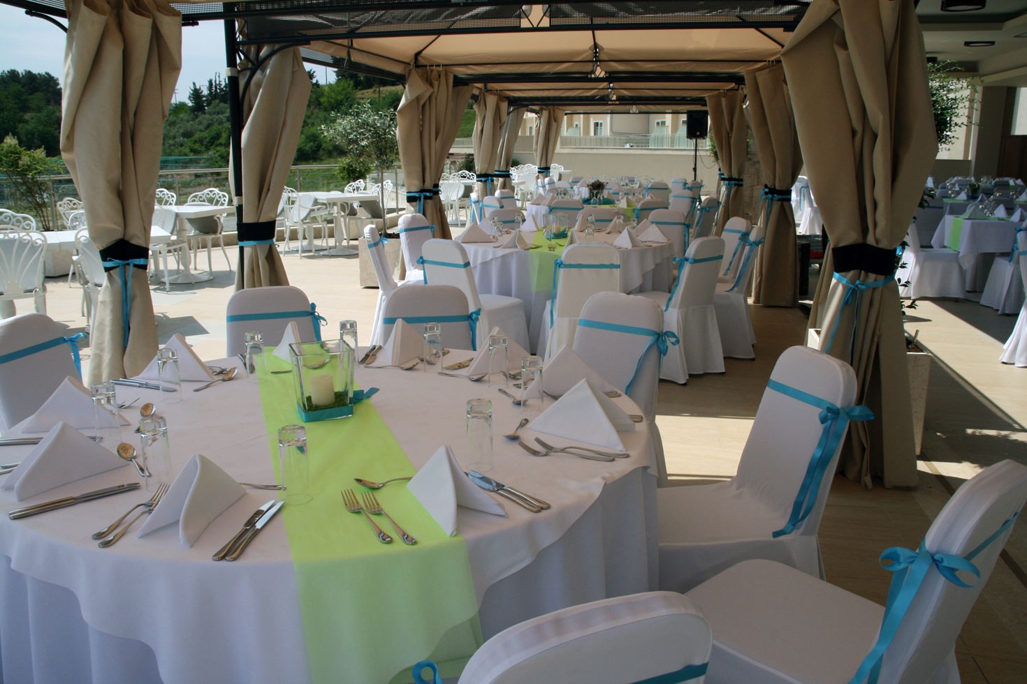 In a hotel resort which covers an extended area with many green spaces, big gardens and a swimming pool it is almost certain that the environment will reward both you and your guests. Your photographs will be amazing since every spot of green or blue of our spaces can be a ''canvas'' for your photographer and it will give a different tone to your memories.